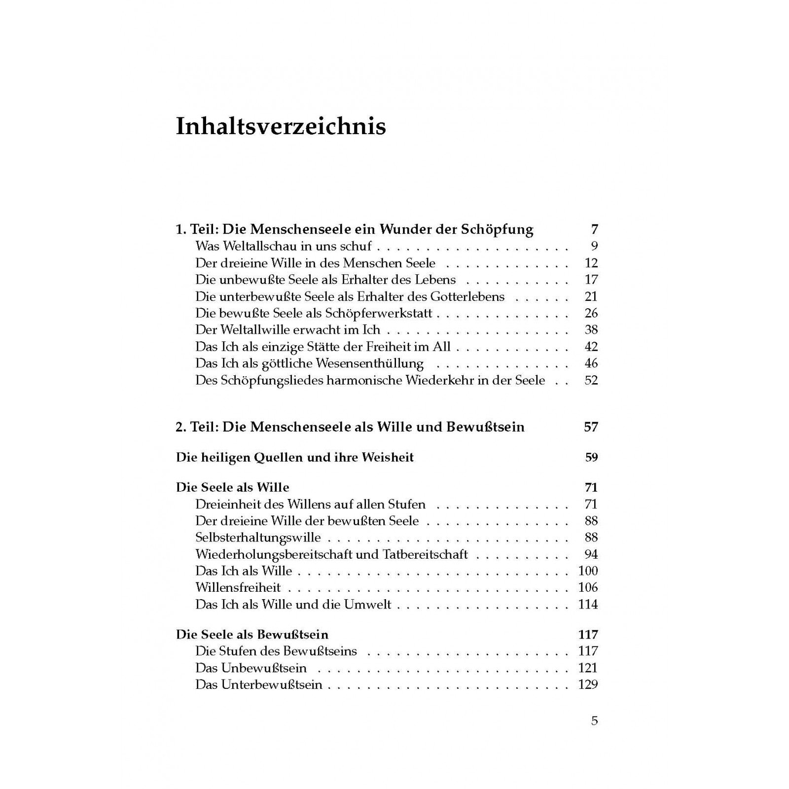 In diesem zweiten Band des zweiten Hauptwerkes "Der Seele Ursprung und Wesen", der Seelenlehre, wird die Seele als Wille und Bewußtsein geschildert. Besonders fesselnd ist die Aufzeichnung der Einwirkung der unbewußten und unterbewußten Seelenkräfte auf das Bewußtsein, wobei vor allem das Unterbewußtsein eine wichtige und segensreiche Rolle spielt. Die Verfasserin nennt es „den Treuhänder des Rasseerbgutes“, das unzerstörbar durch Erziehungs- und Schicksalseinflüsse in uns ruht, um in den Augenblicken der Todesnot plötzlich die Herrschaft über unser Tun an sich zu reißen. Dieses Werk bedeutet den Sturz fast aller heute sich noch breitmachenden „Psychologie“, eine erste Klarheit über die Seelenfähigkeiten und alle ihre Gesetze. Von der heutigen „Wissenschaft“ sorgfältig totgeschwiegen, wird es die weitesten Wissensgebiete kommender Jahrhunderte gestalten.